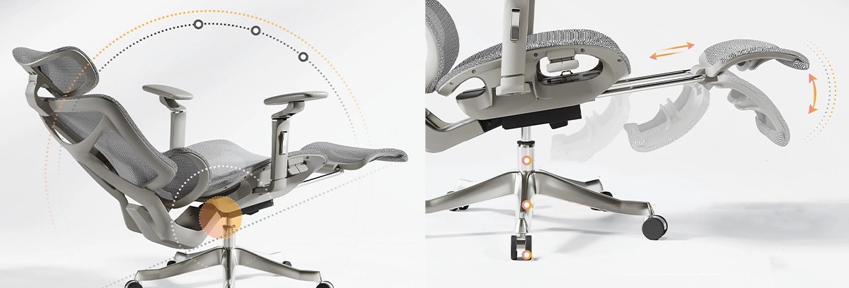 This system controls how the chair moves with the user. The most common type is a synchronous reclining mechanism, which connects the seat cushion and backrest to recline back in a synchronized ratio (e.g. 2:1, which means that the backrest reclines back 2 degrees and the seat cushion reclines 1 degree). This maintains the user's vision level and keeps his feet on the ground. The chair is equipped with a tilt tension knob that allows users to adjust the resistance to recline to suit their weight. The tilt lock feature typically locks the mechanism in an upright or reclined position. The more advanced ergonomical desk chair with footrest provides multi-directional tilting (seat cushion sliding, knee tilting) for more natural movements. The smooth operation of the system defines the "feel" of the chair and is crucial for dynamic sitting and comfort.