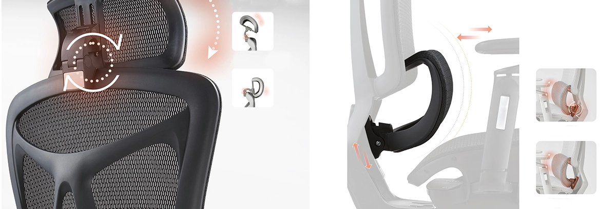 The backrest is used to counteract the effect of gravity on the spine. Its core function is to provide dynamic lumbar support-that is, to maintain the internal curvature of the spine's natural "S" curve. In the base chair, this is a static cushion. In a true ergonomical mesh desk chair, this is an adjustable system that includes a height-adjustable lumbar support (which can move up and down), an adjustable depth-adjustable support pad (which can protrude forward and backward), or a flexible tension-adjustable mesh backrest that automatically fits the body. The backrest is connected to the seat cushion through a reclining mechanism. This is the core principle of the mesh ergonomical desk chair design.